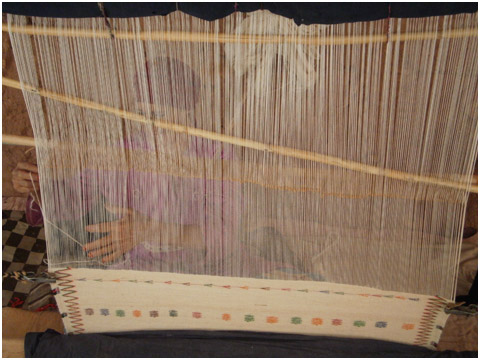 ![]() Sa grand-mère tisse des couvertures et des tapis. |